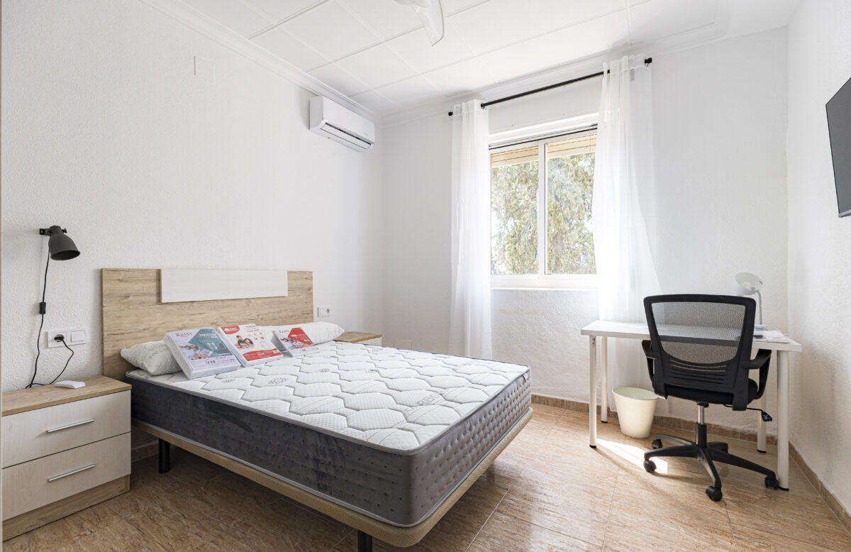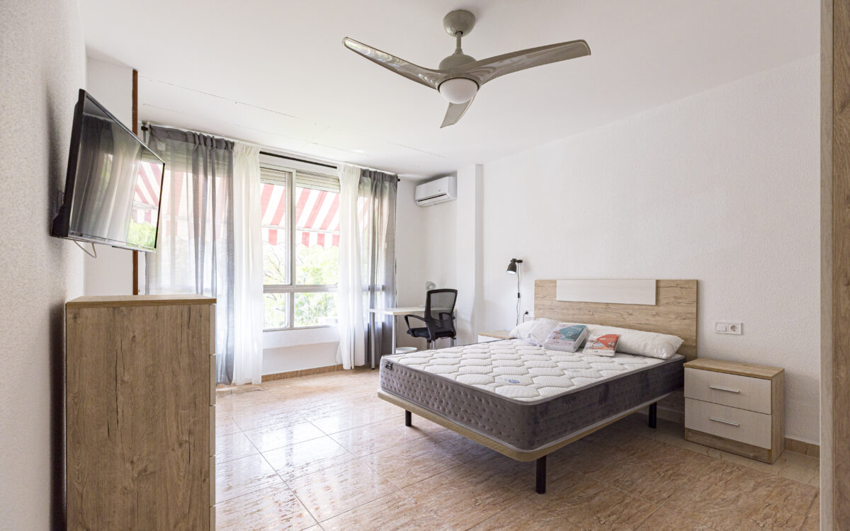 Vivienda para estudiantes en Murcia a 1 minuto del Auditorio Victor Villegas y 3 minutos del Hospital Reina Sofia, todos los servicios, aire acondicionado y ventilador en cada habitación y salón, camas individuales de matrimonio de 1,35 baño, salón y cocina compartidos, terraza en una de las habitaciones.